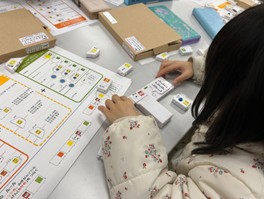 2022年より始まったこの授業は、本格的なプログラミング授業が始まる3年生の前準備との位置づけで、小学校2年生で「パソコンを使わないPIECEのプログラミング授業」を行っています。近年はその対象を小学校1年生まで広げ、全学年でプログラミング教育の目的でもある「論理的思考」を育む授業に取り組まれています。